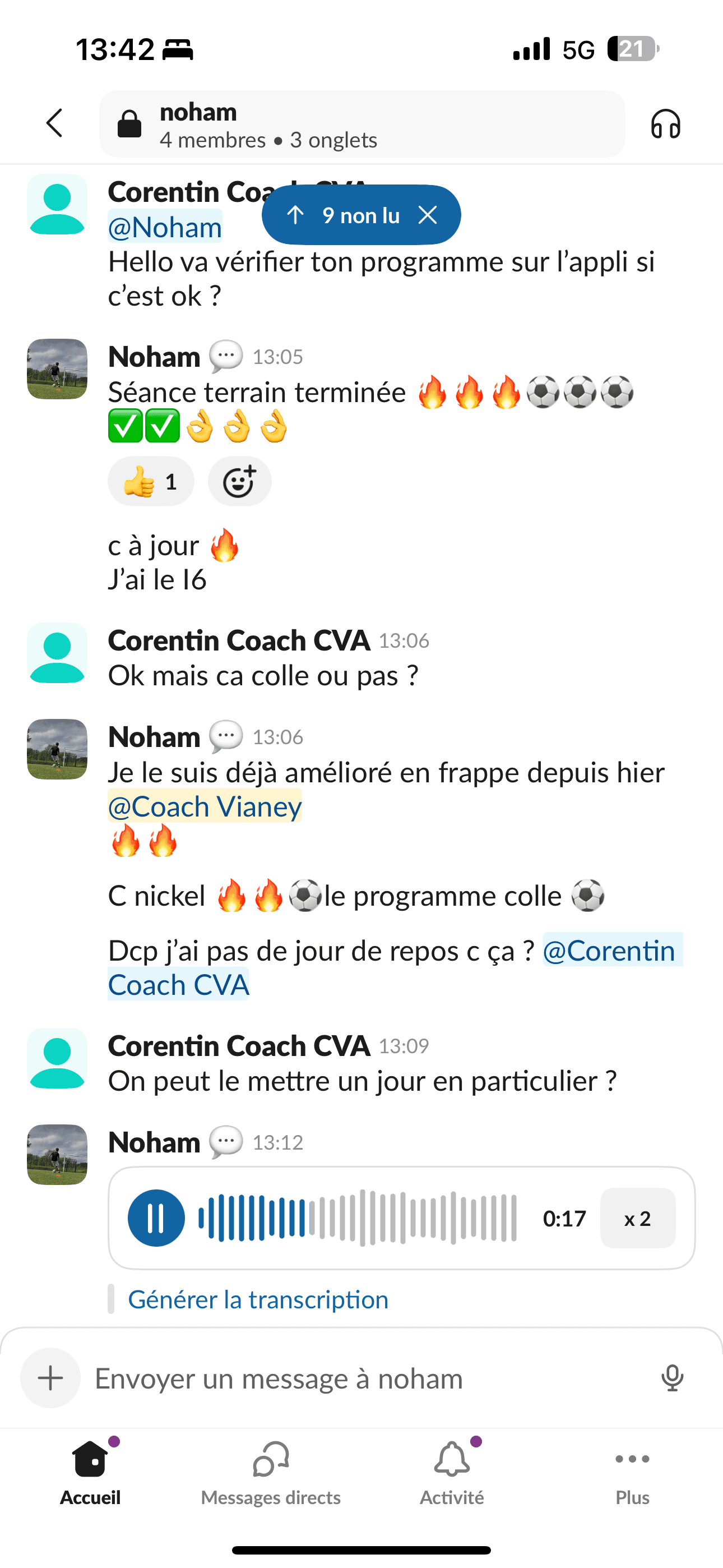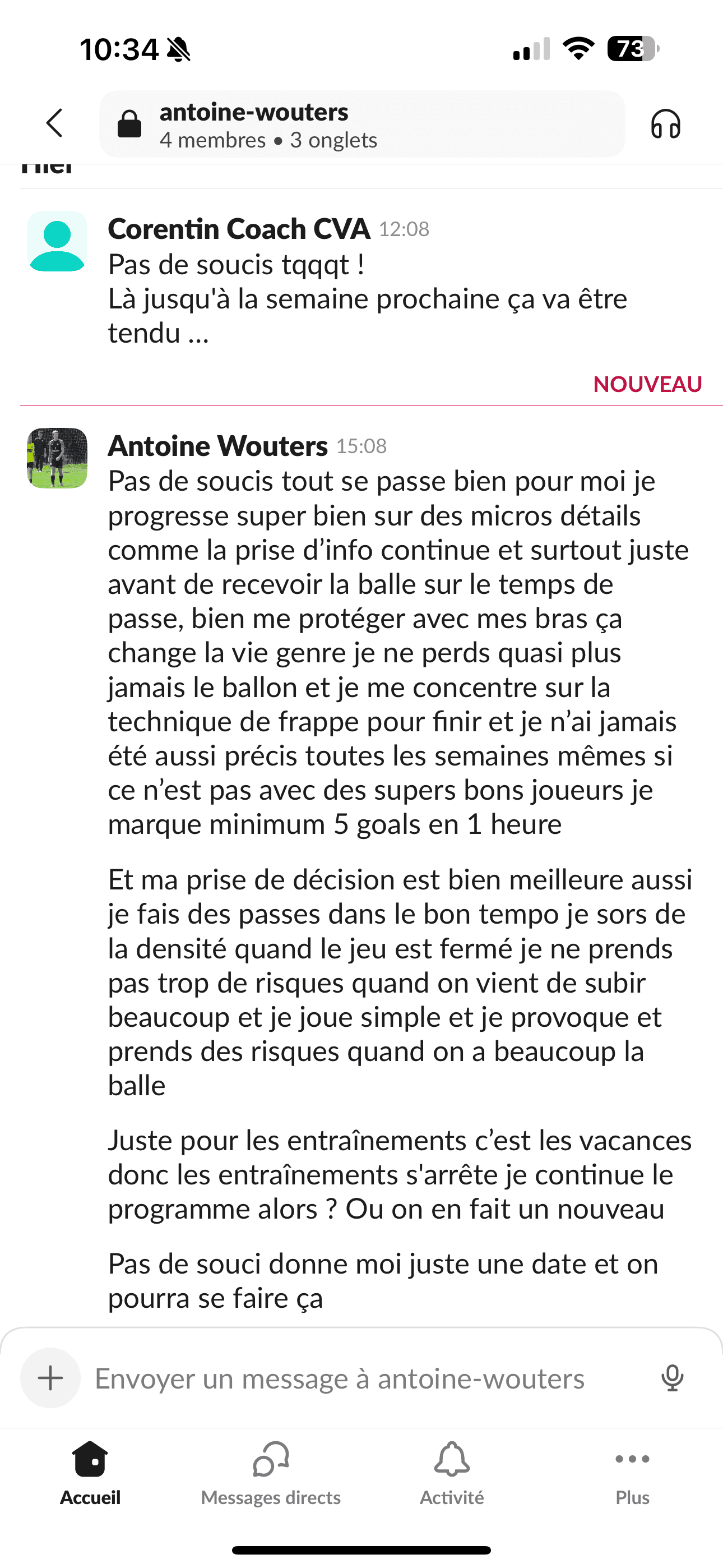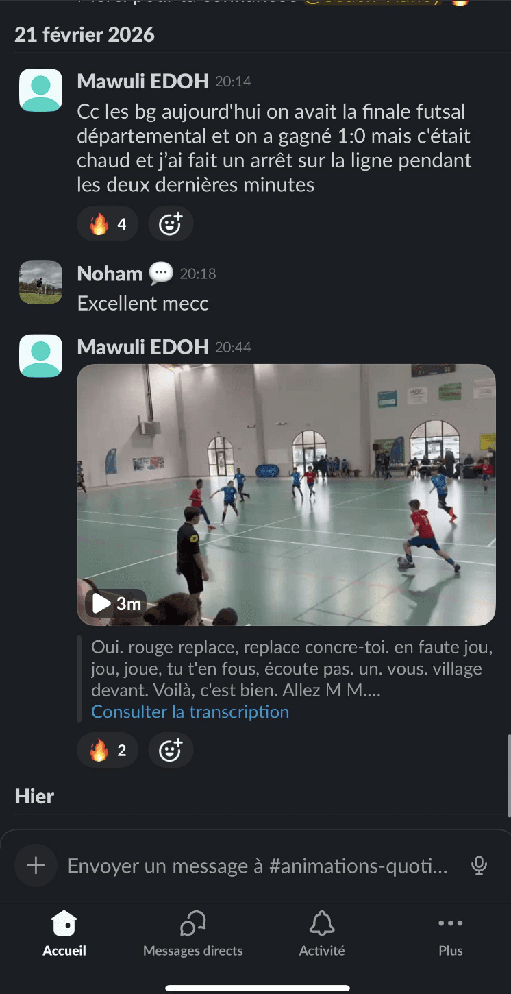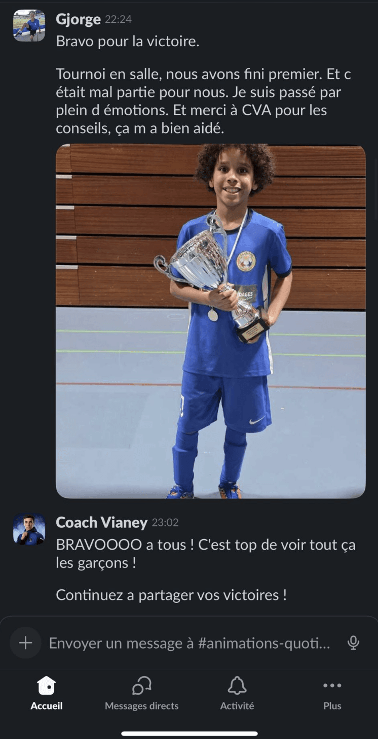 Dès que vous êtes accepté, on démarre comme dans une structure haut niveau, mais depuis chez vous : 1) Diagnostic de départ : échange + analyse du contexte (âge, poste, niveau, objectifs, planning club/école, historique blessures). 2) Plan de travail 100% personnalisé dans notre application privée : séances physiques, routines “invisibles” (mobilité, récup, sommeil, nutrition), objectifs hebdo. 3) Suivi régulier en visio (1-1) : on corrige, on ajuste, on challenge. 4) Retours & corrections : vos vidéos / vos retours servent à affiner le travail (technique/tactique selon le suivi). 5) Ajustements continus : si le planning change (matchs, fatigue, blessure, examens), on adapte immédiatement pour progresser sans surentraînement. 6) Cadre + discipline : on suit la constance, on structure la semaine, et on installe des habitudes durables. 👉 En clair : ce n’est pas “un programme envoyé”. C’est un accompagnement réel, personnalisé, avec un coach qui suit votre enfant sur la durée.